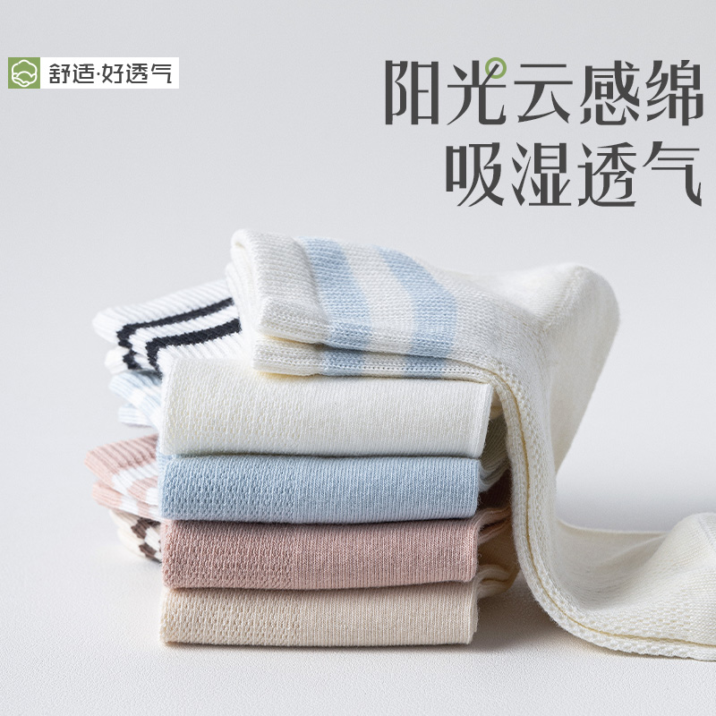 透气运动风中短筒袜无骨 薄款 全棉短袜子女春秋季 纯棉吸汗防臭夏季