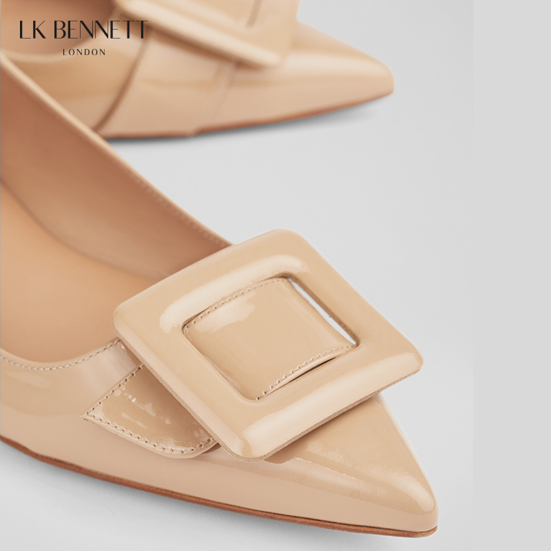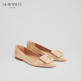 方扣优雅气质尖头浅口平底 经典 lkbennett裸色真皮单鞋 女2024新款