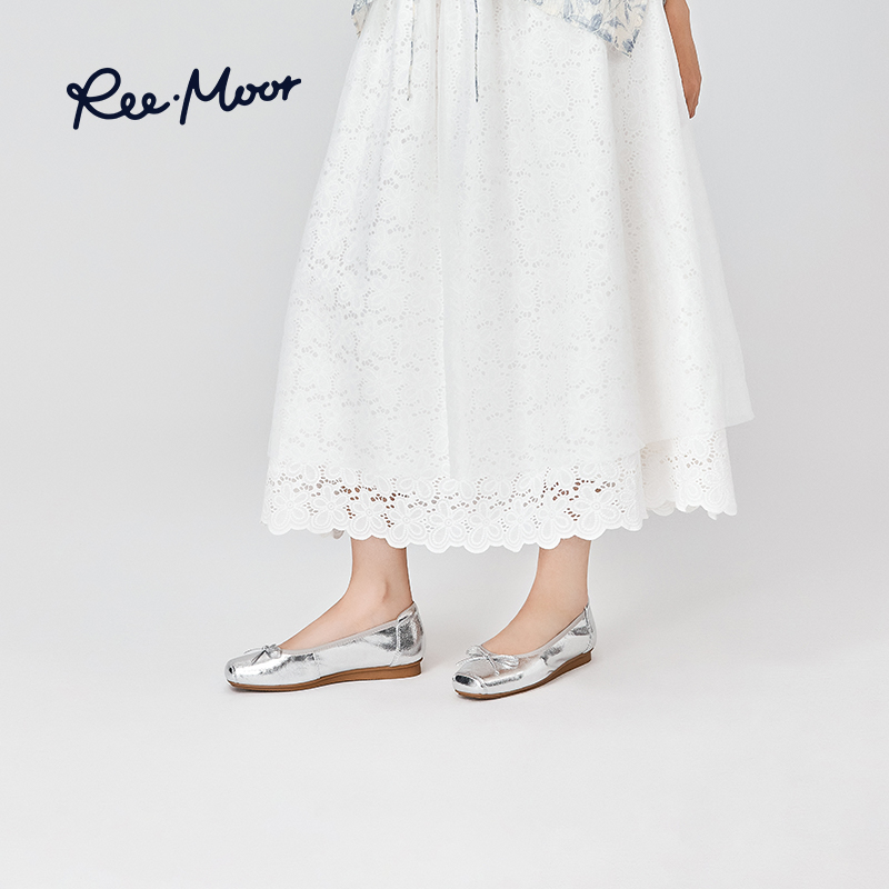 温柔风配裙子豆豆鞋 新款 女2024秋季 星期六真皮平底蝴蝶结浅口单鞋