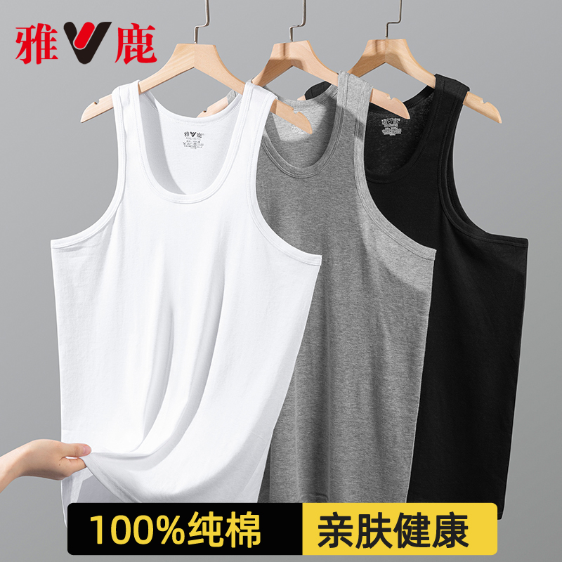 打底健身紧身汗衫 内穿100%全棉夏季 纯棉背心运动跨栏男款 雅鹿男士
