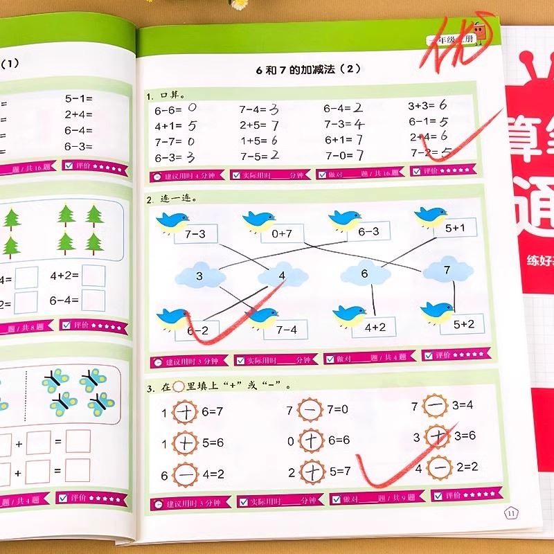 小学123年级小学数学加减法练习册口算心算速算天天练计算小达人口算题卡 春季 口算笔算大通关2024新版 一二三年级下册语数英人教版