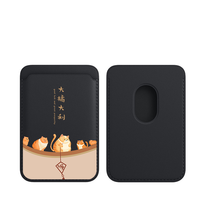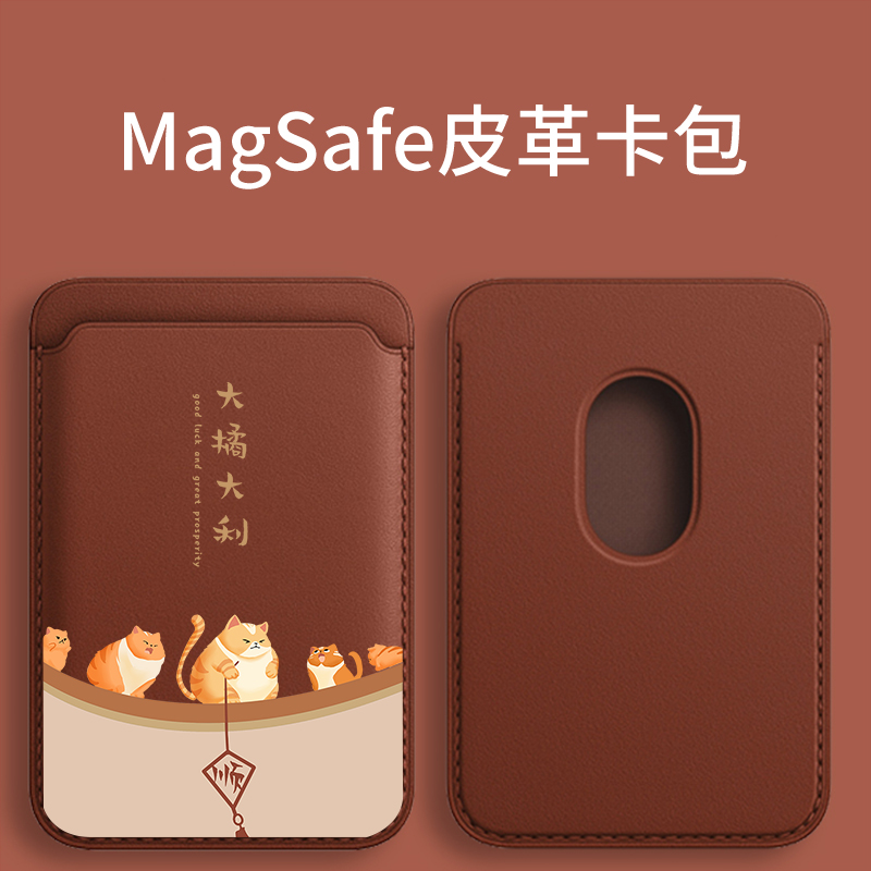 15pro卡套式 大橘大利橘猫皮革卡包适用于苹果13pro公交卡iphone14plus同款 手机配件门禁 Magesafe磁吸卡包