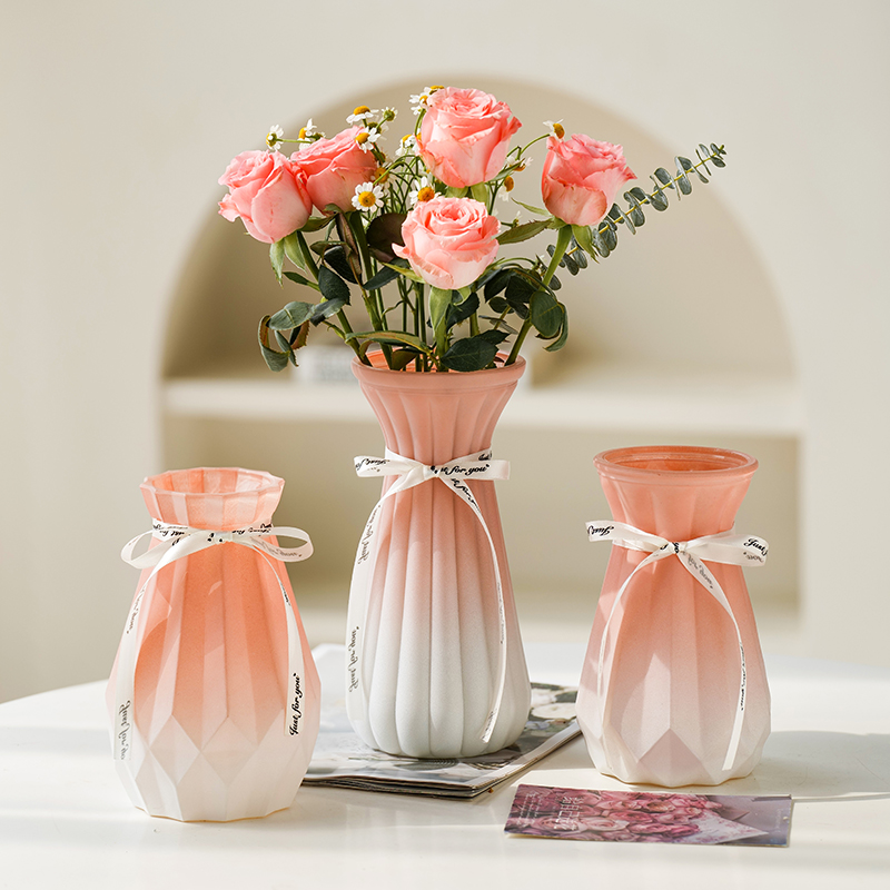粉白色磨砂ins北欧玻璃插花瓶干花创意客厅插花水养鲜花百合摆件