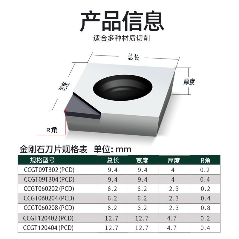 0.4 1204金刚石刀片R0.2 0.8 09T3 菱形内孔PCD铝用刀片ccgt0602