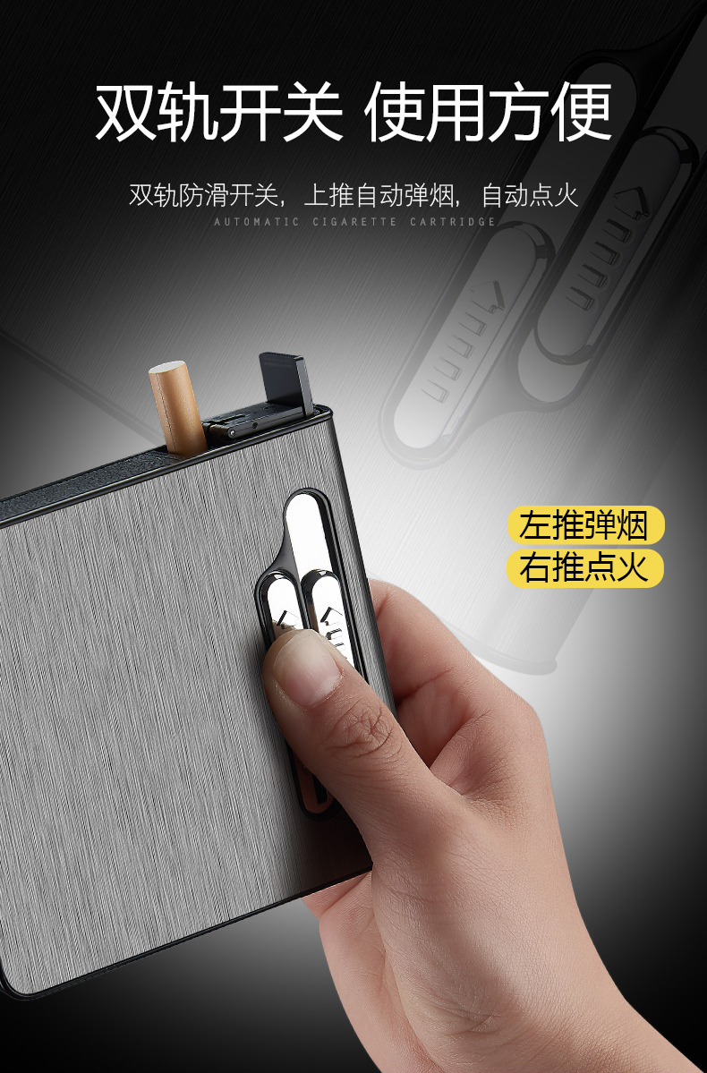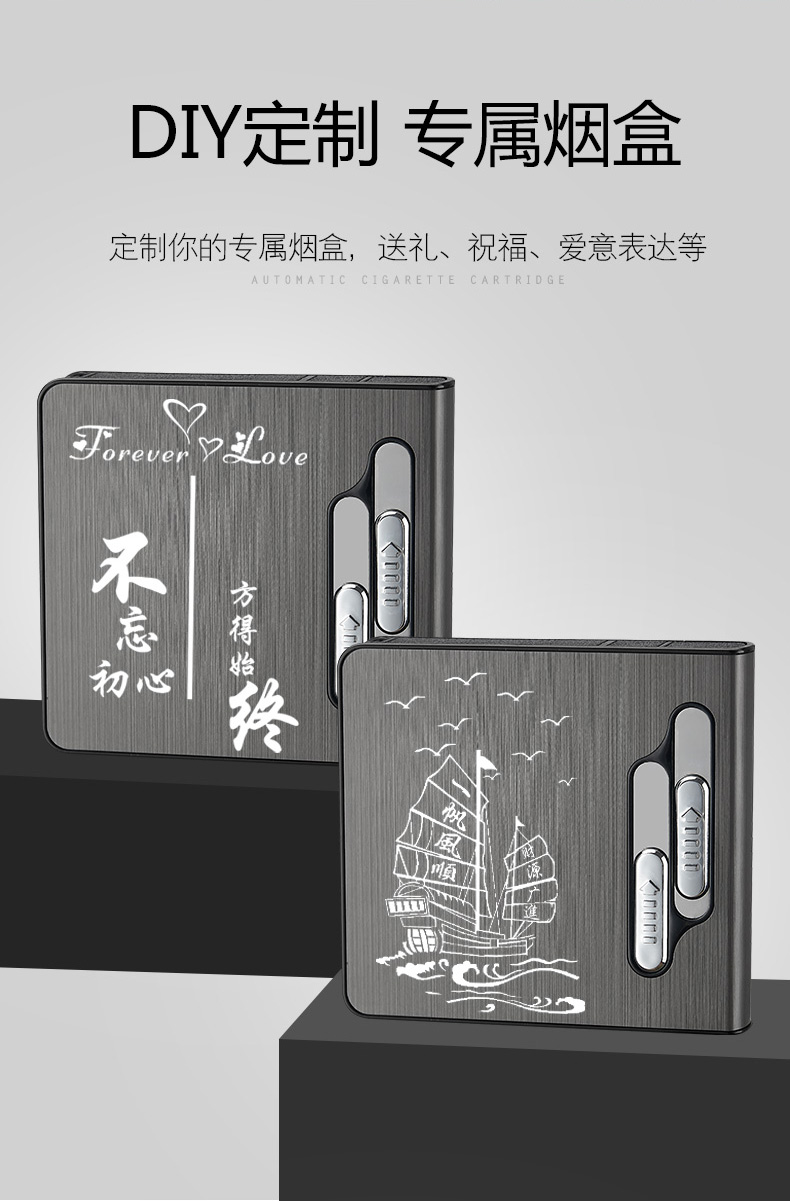 烟盒男便携20支装 防风打火机创意一体充电多功能全自动弹烟烟盒女