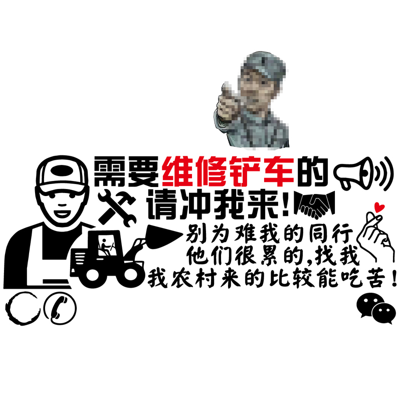 个性 魂速 请冲我来 需要维修铲车 创意广告车贴纸 维修铲车车贴