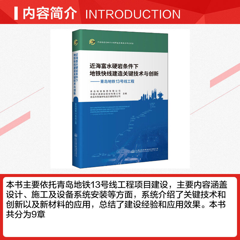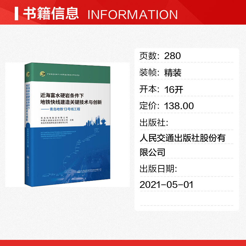 新华书店旗舰店文轩官网 书籍 近海富水硬岩条件下地铁快线建造关键技术与创新——青岛地铁13号线工程 正版