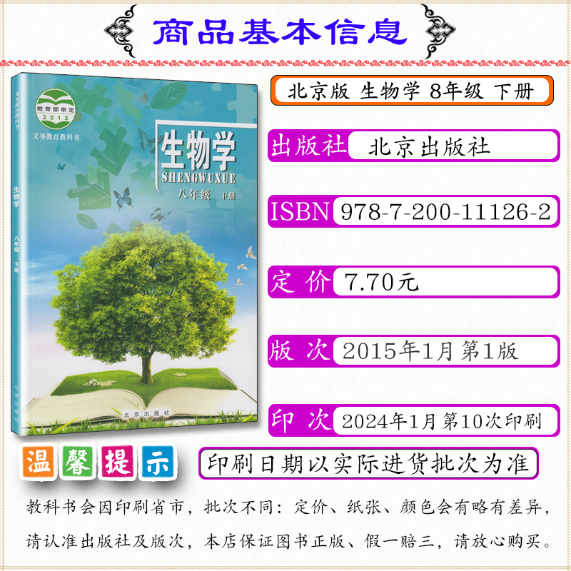 8年级生物下册北京课改北京出版 初二八下生物书8年级下册生物书北京版 社中学生教材教科书 初中课本八年级下册生物学北京课改版 老版