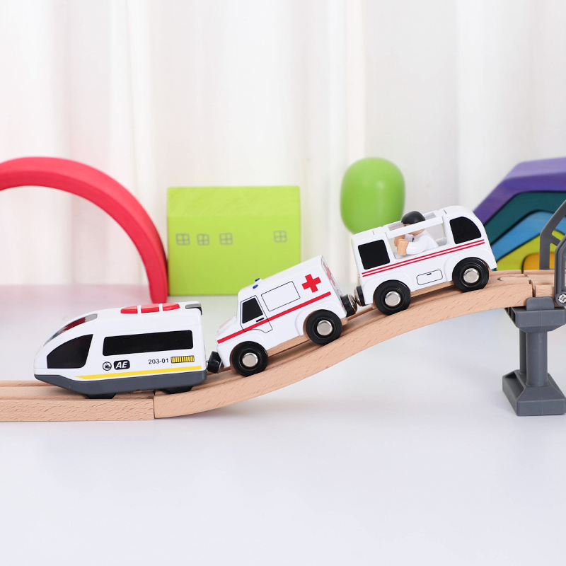 火车轨道玩具木质电动遥控小火车头玩具兼容米兔BRIO木制轨道