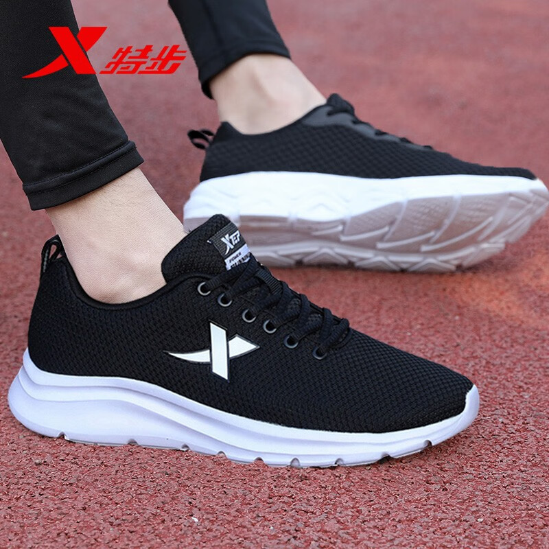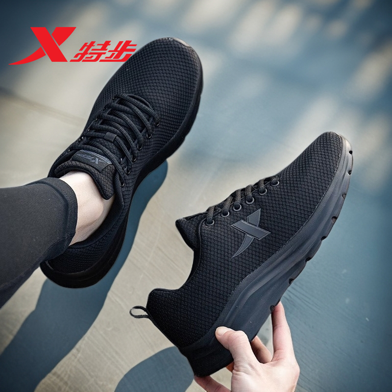官方正品 休闲鞋 子黑色网鞋 特步男鞋 男跑鞋 秋季 网面运动鞋 2025新款