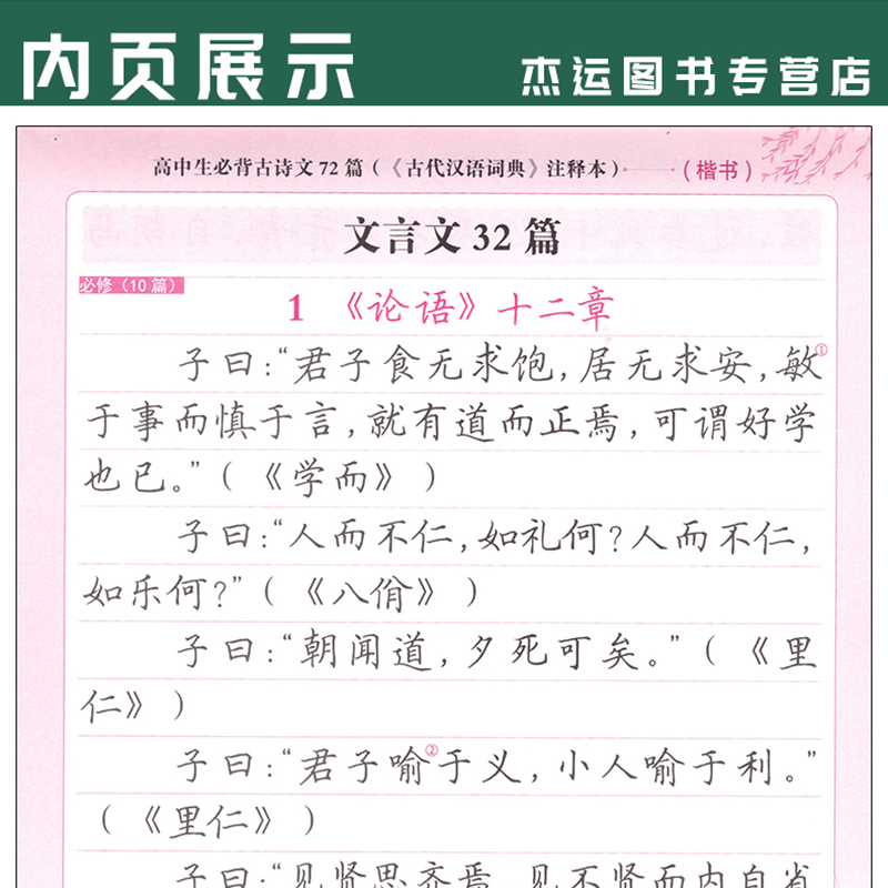 商务印书馆田英章字帖高中生必背古诗文72篇字帖楷书高中文言文高考72篇正楷入门硬笔钢笔临摹练字练字帖女生字体漂亮手写练字本