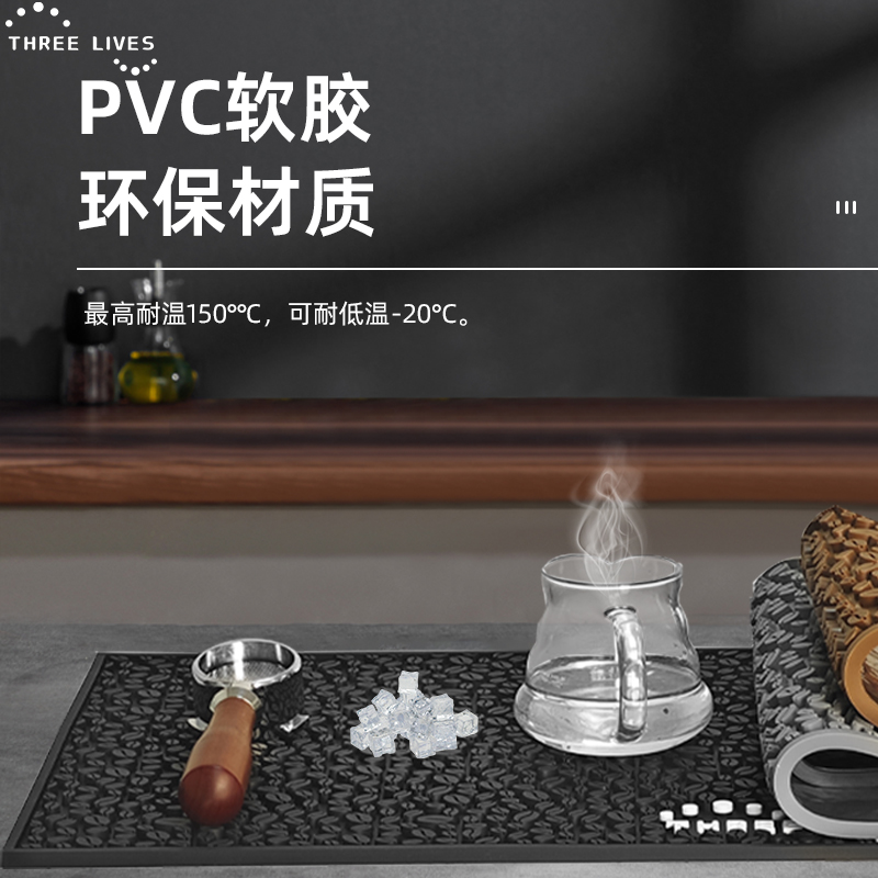 THREELIVES吧台沥水垫酒吧垫咖啡馆用防滑垫咖啡豆元 素抗菌沥水垫