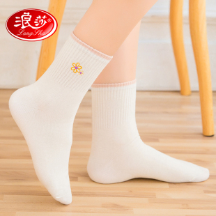 浪莎袜子女纯棉中筒袜秋冬女士棉袜防臭潮秋冬季 全棉袜春秋女袜子
