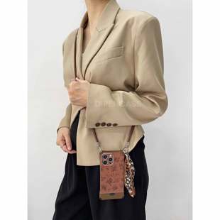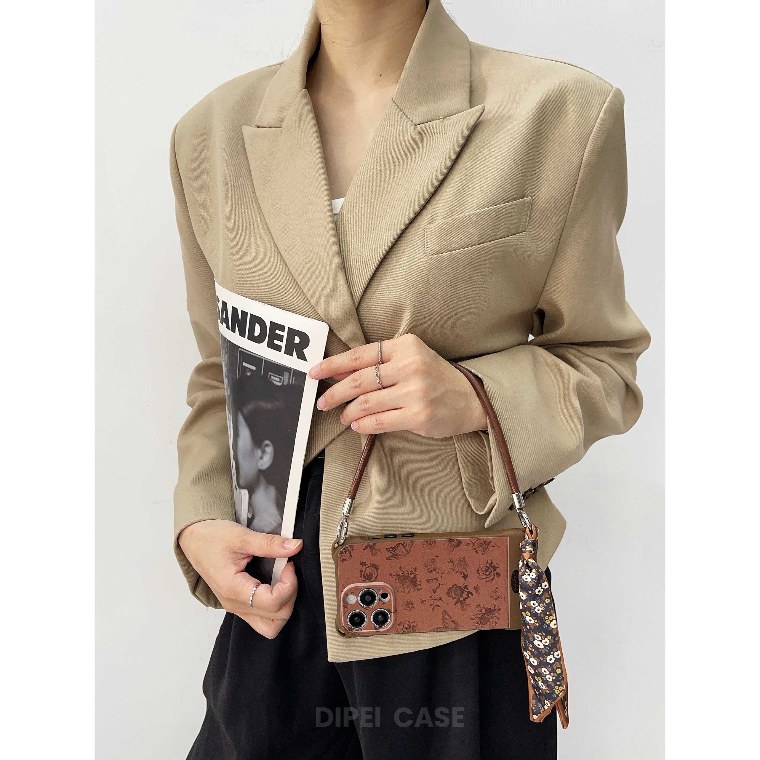 气质复古拓印花蝶挂绳手机壳17promax适用于荣耀华为PURA70苹果iPhone16Plus手提手拎防摔丝巾小米15斜挎侧背