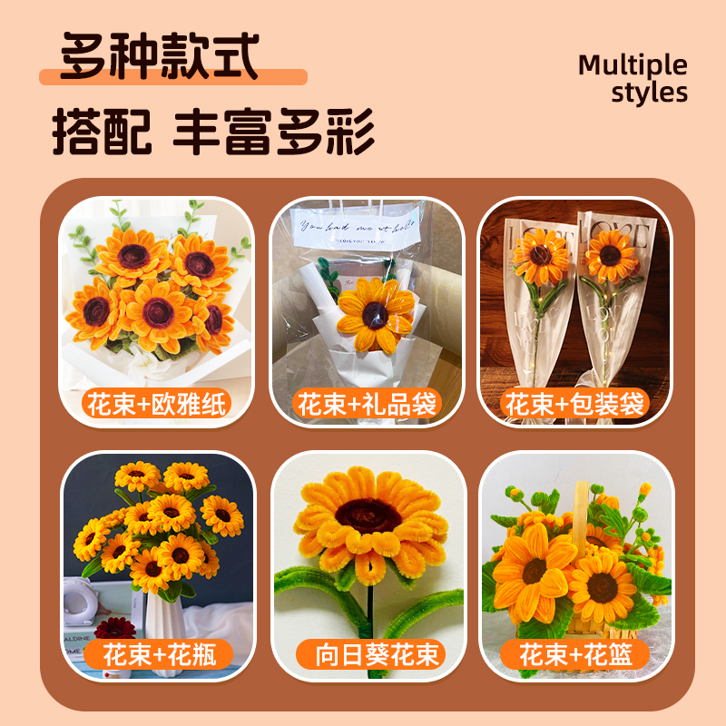 特密扭扭棒向日葵花束教师节手工diy材料包全套彩色幼儿园儿童编织太阳花加密金黄色军绿色毛根条妞妞棒批发