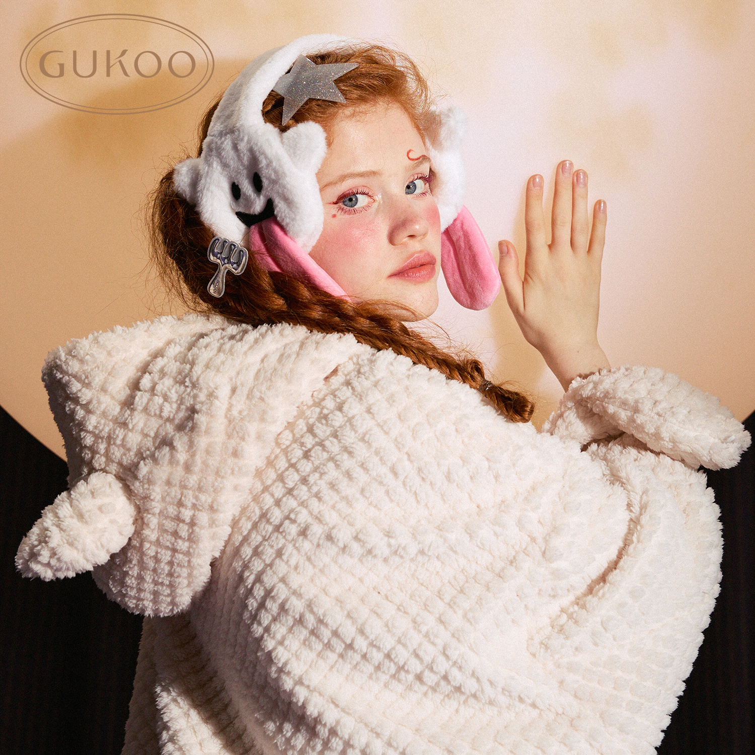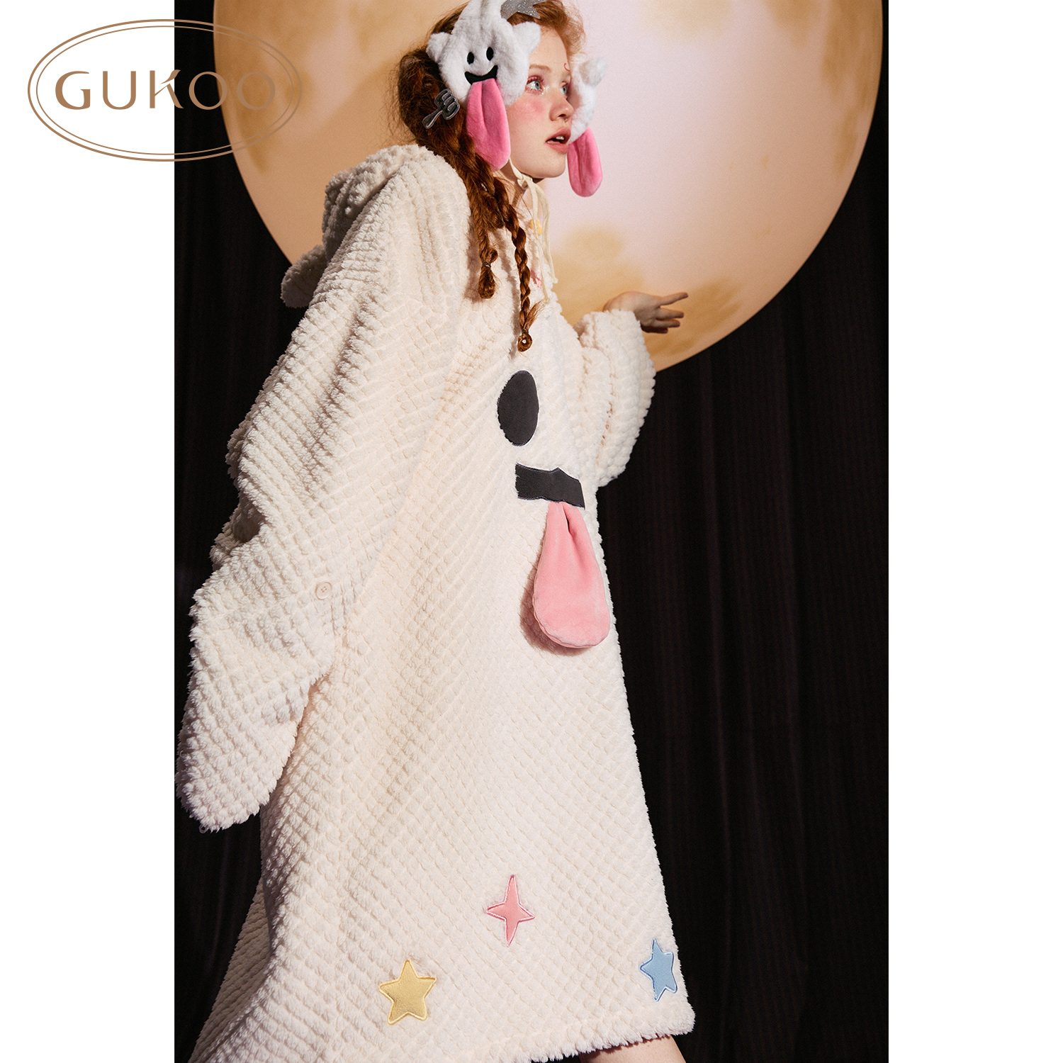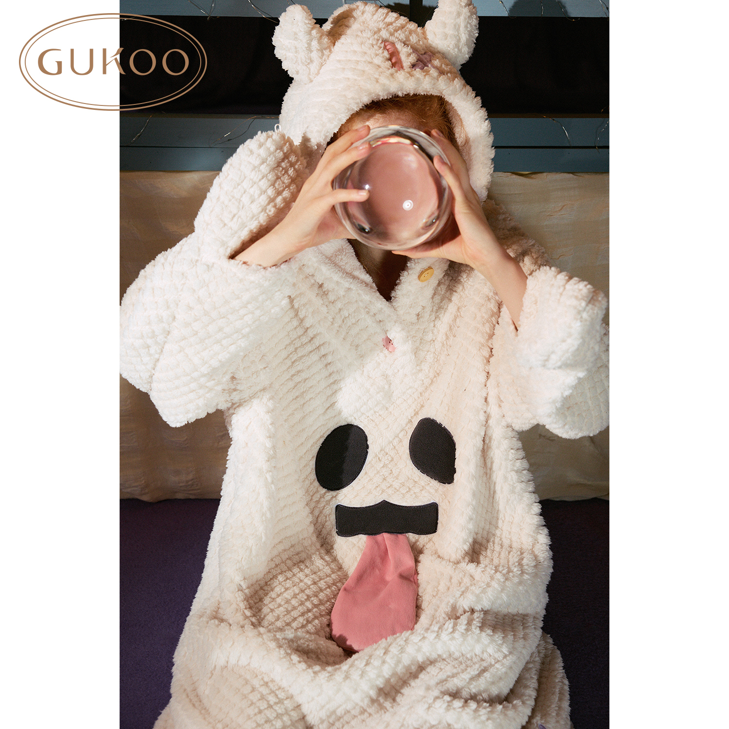毛绒保暖女士家居服睡裙D 小鬼杏色新款 Gukoo 果壳睡裙女冬季
