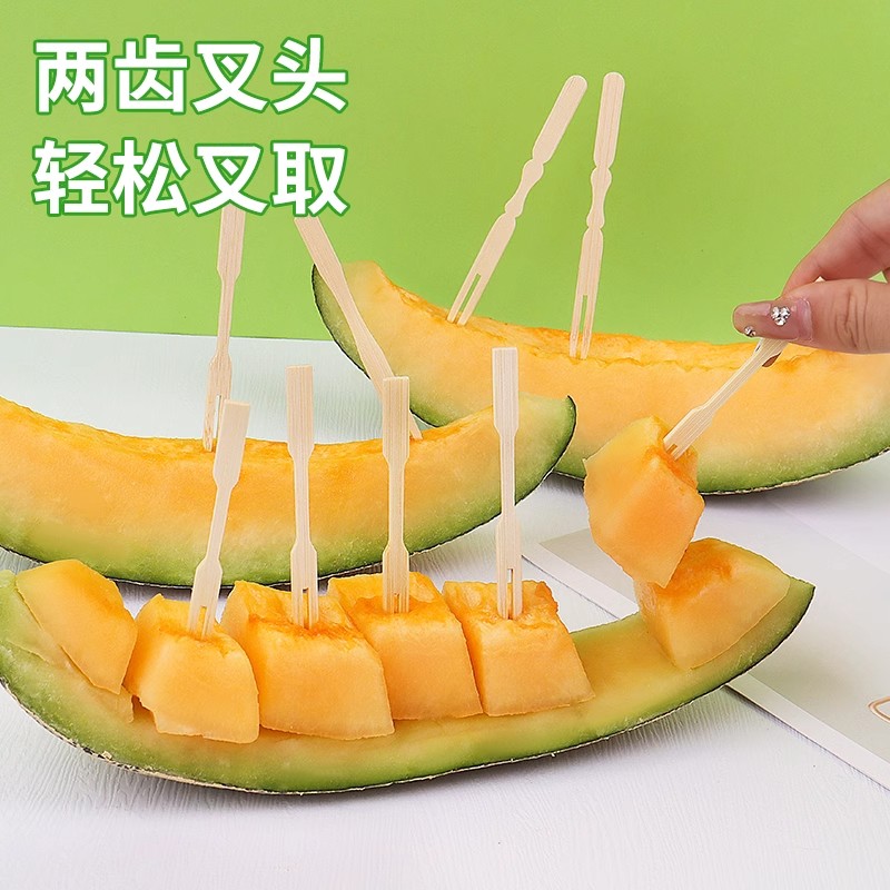 一次性竹制水果叉竹叉家用蛋糕点心小叉子独立包装 环保竹签水果刺