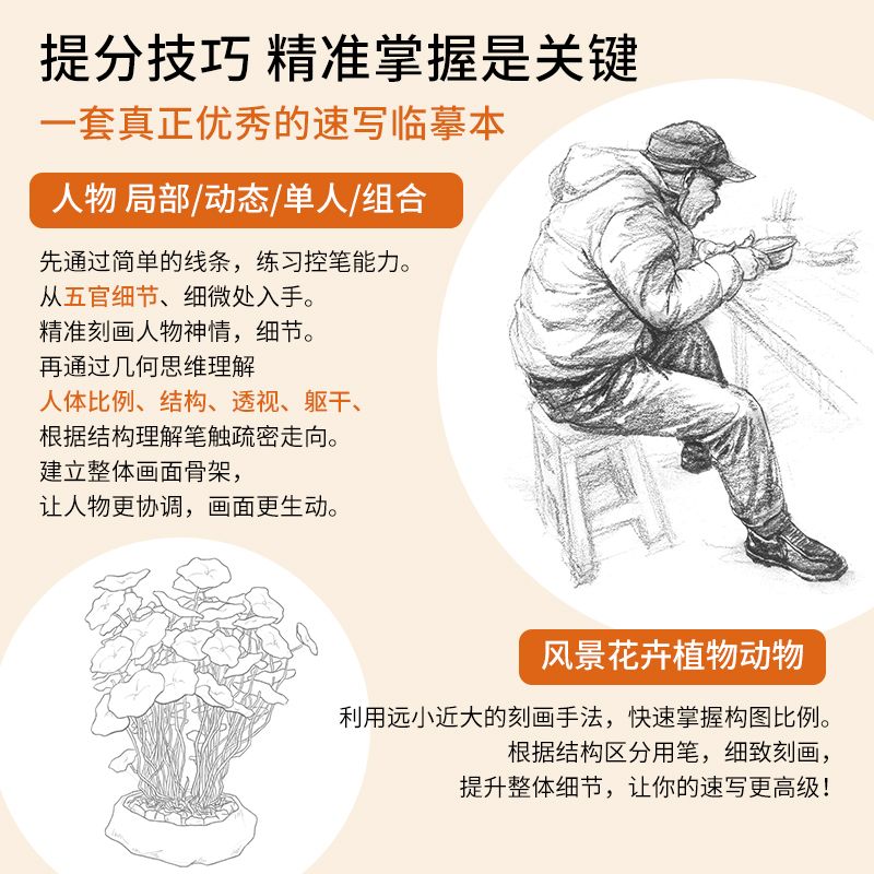 零基础速写入门教程人物速写描摹范本风景植物动物人物局部动态线性组合素描画册临摹本新手自学绘画教程画集美术入门基础临摹范本