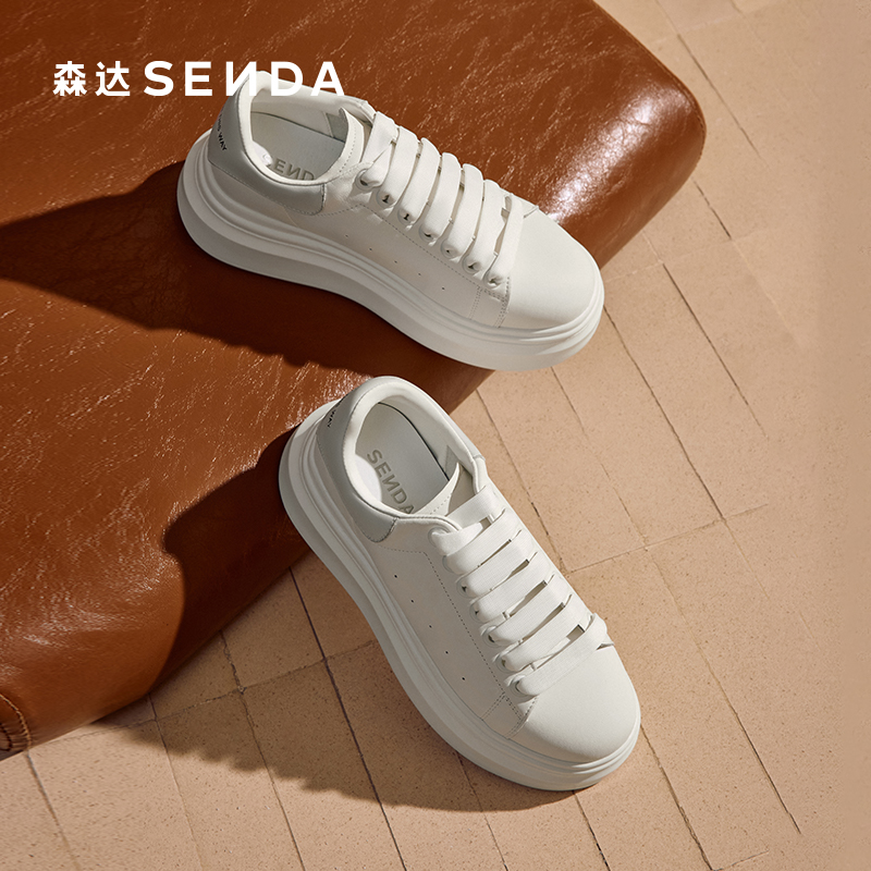 麦昆厚底显高户外休闲小白鞋 森达板鞋 商场同款 2025新款 XKS01 女款