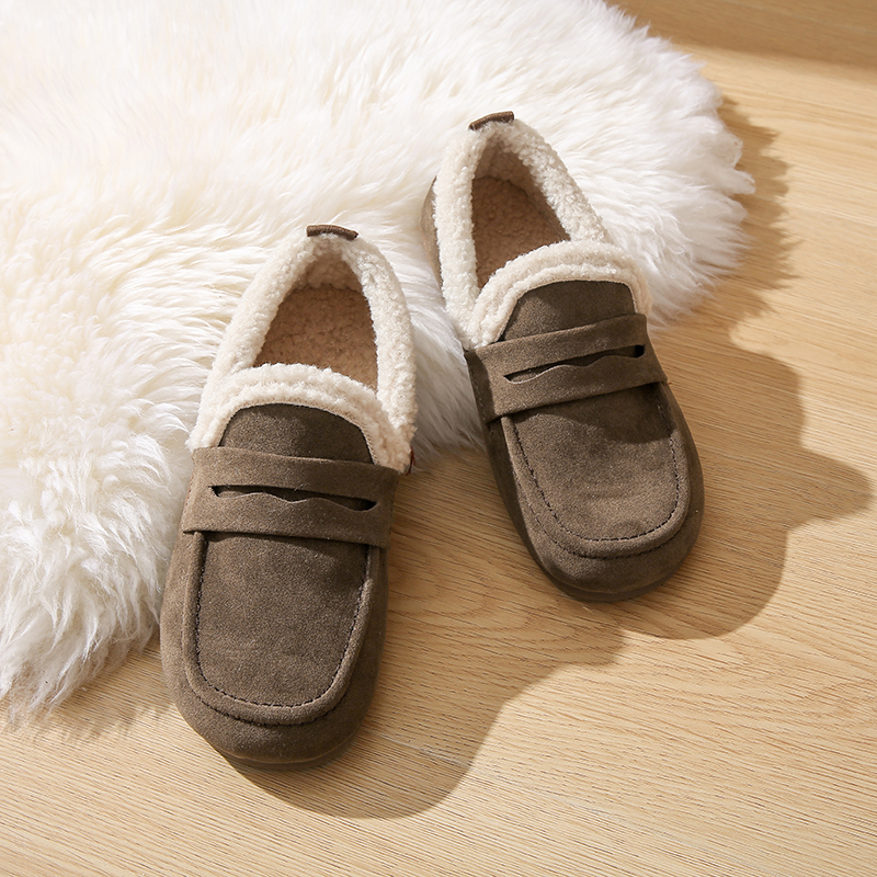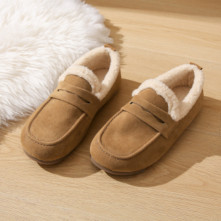 浅口雪地棉 女孕妇保暖棉鞋 日系加绒勃肯棉瓢鞋 女懒人一脚蹬豆豆鞋