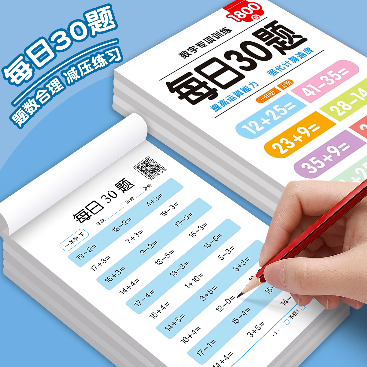一年级二三年级上下册口算题卡数学口算天天练专项速算同步练习册20 100以内加减法计算练习题强化训练口算题100题道每日一练30题