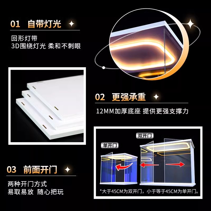 蔚蓝档案手办收纳盒亚克力回形灯展示柜 圣园未花 适用GSC 粘土人