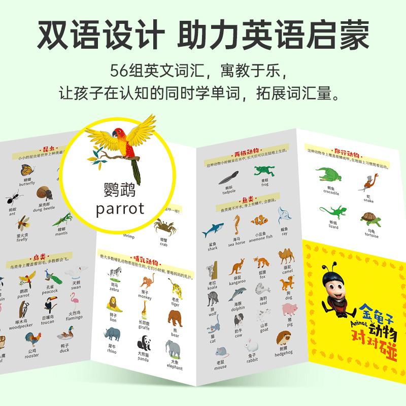 金龟子动物对对碰卡片共54张对对碰卡片益智卡牌玩具桌游找相同配对卡片专注力训练注意力训练教具神器儿童思维逻辑训练左右脑开发