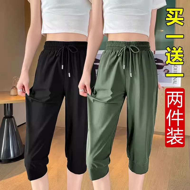 两件 宽松休闲松紧高腰妈妈哈伦裤 七分运动速干裤 薄款 女春夏季 单