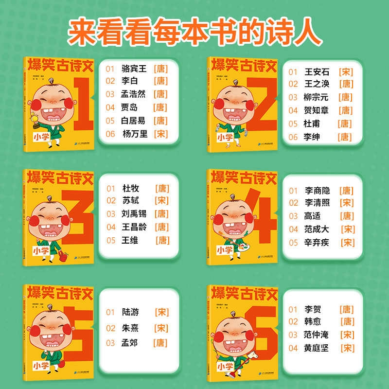 斗半匠爆笑古诗文全套6册正版 文言文小学生必背古诗词同步课本每日一篇爆笑小古文漫画分级阅读小学一年级注音二年级三四五六年级