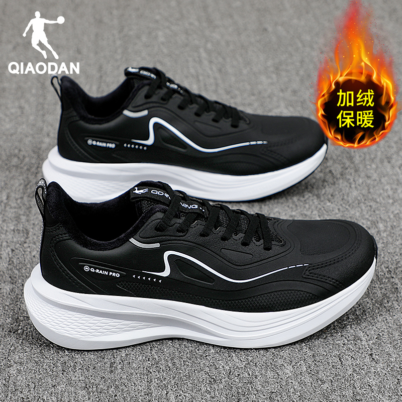 男鞋 皮面防水黑色跑步鞋 冬季 官方旗舰正品 加绒保暖棉鞋 乔丹运动鞋