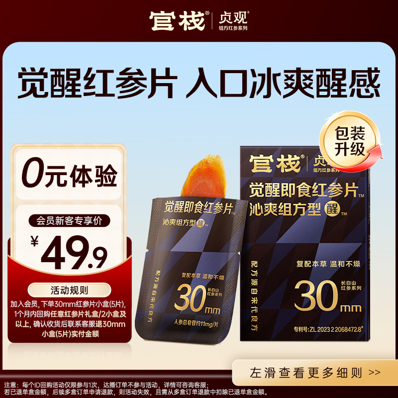 贞观清润觉醒即食红参片大片厚切长白山人参旗舰店 享 入会0元