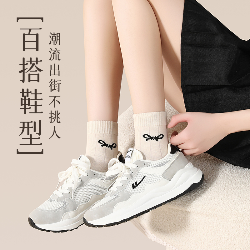 爆款 2025新款 无骨防臭中筒运动袜 短袜纯棉春秋季 棉竹屋袜子女款