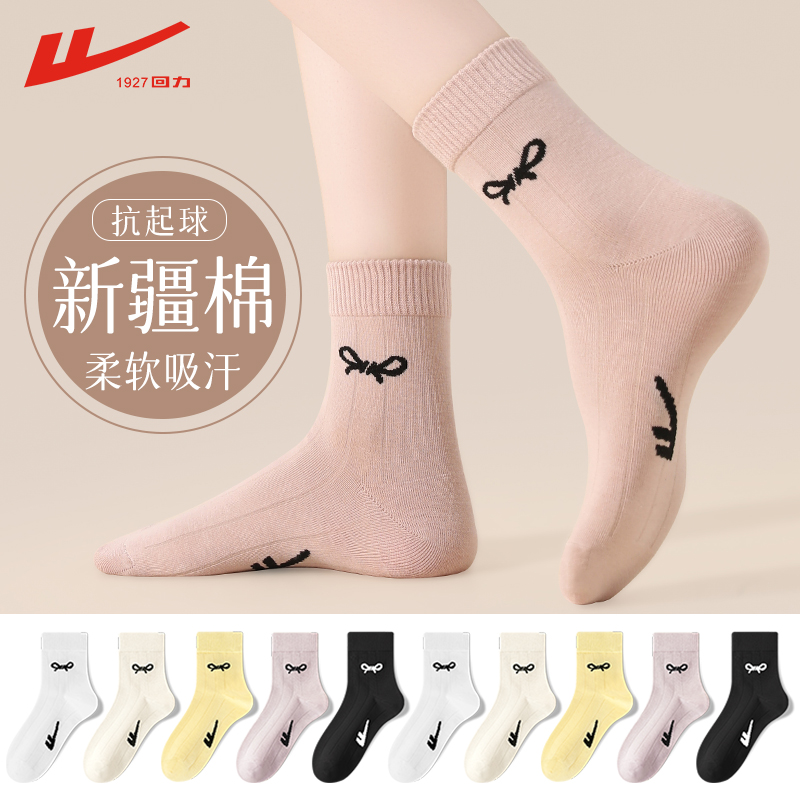 长筒袜100%正品 回力纯色新疆棉袜子男款 春秋吸汗防臭中筒袜夏季