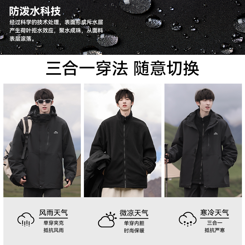 JEEP SPIRIT冲锋衣冰雾粉三合一防风防水耐磨户外外套10.8