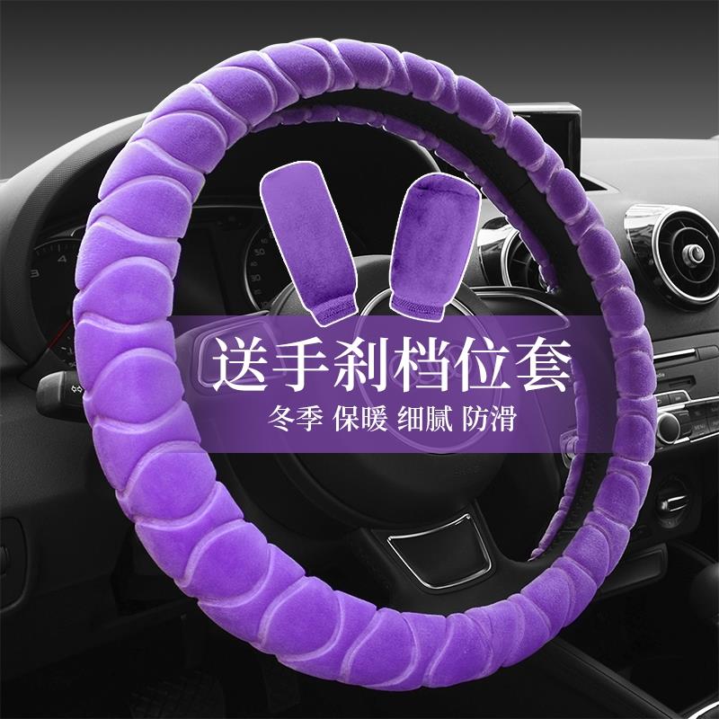 汽车方向盘冬季 长短毛绒保暖防滑男女通用型可爱d型三件套车把套