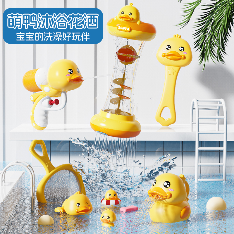 小黄鸭儿童洗澡戏水玩具套装 宝宝花洒戏水杯喷水小孩浴室女孩0