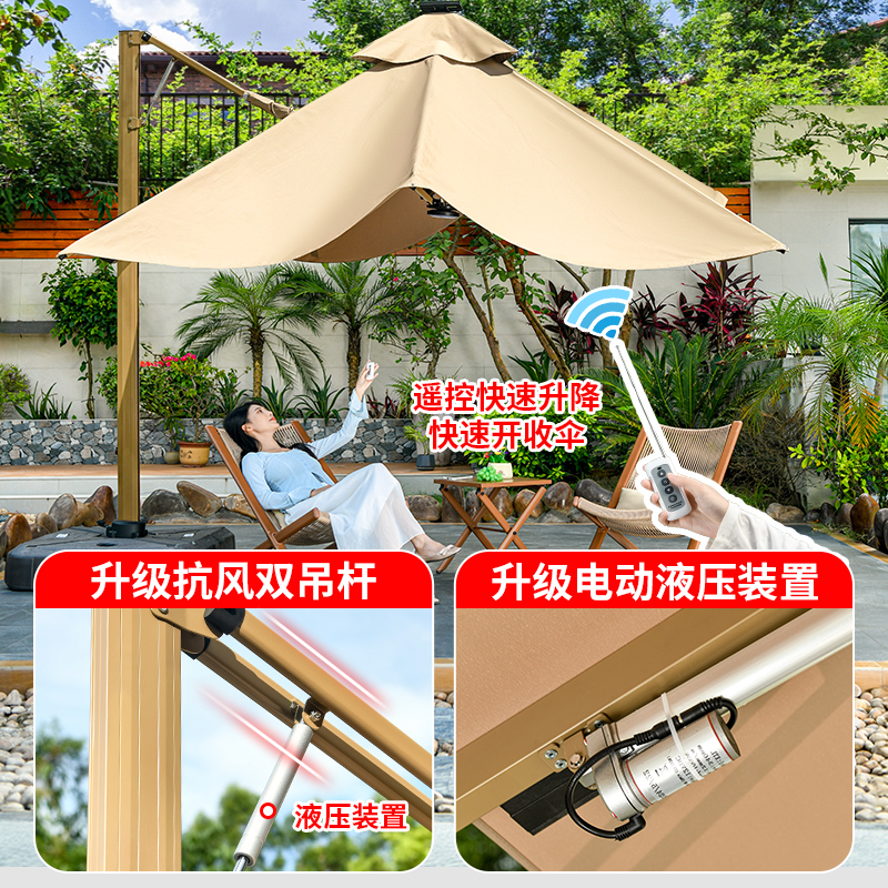 远茂专业户外电动遮阳伞遥控液压庭院伞室外带灯别墅防晒罗马伞