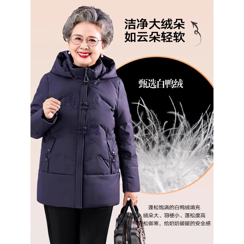连帽加厚保暖中老年人奶奶外套女洋气 短款 妈妈羽绒服冬季 2025新款