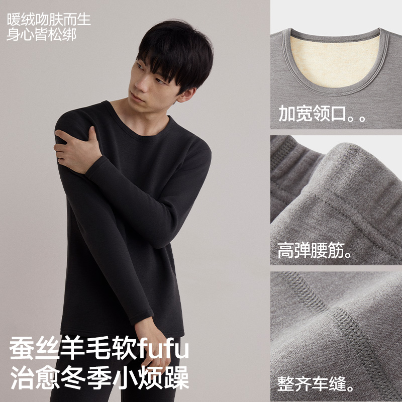 加绒加厚保暖内衣套装 海澜之家情侣款 打底秋衣秋裤 蜂狂双11