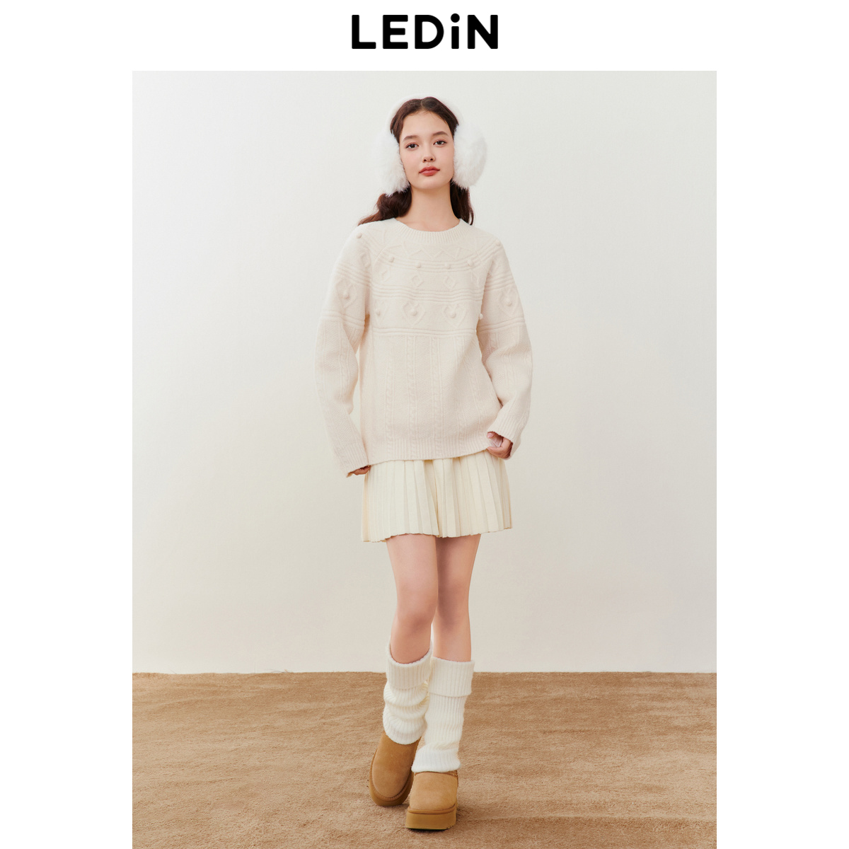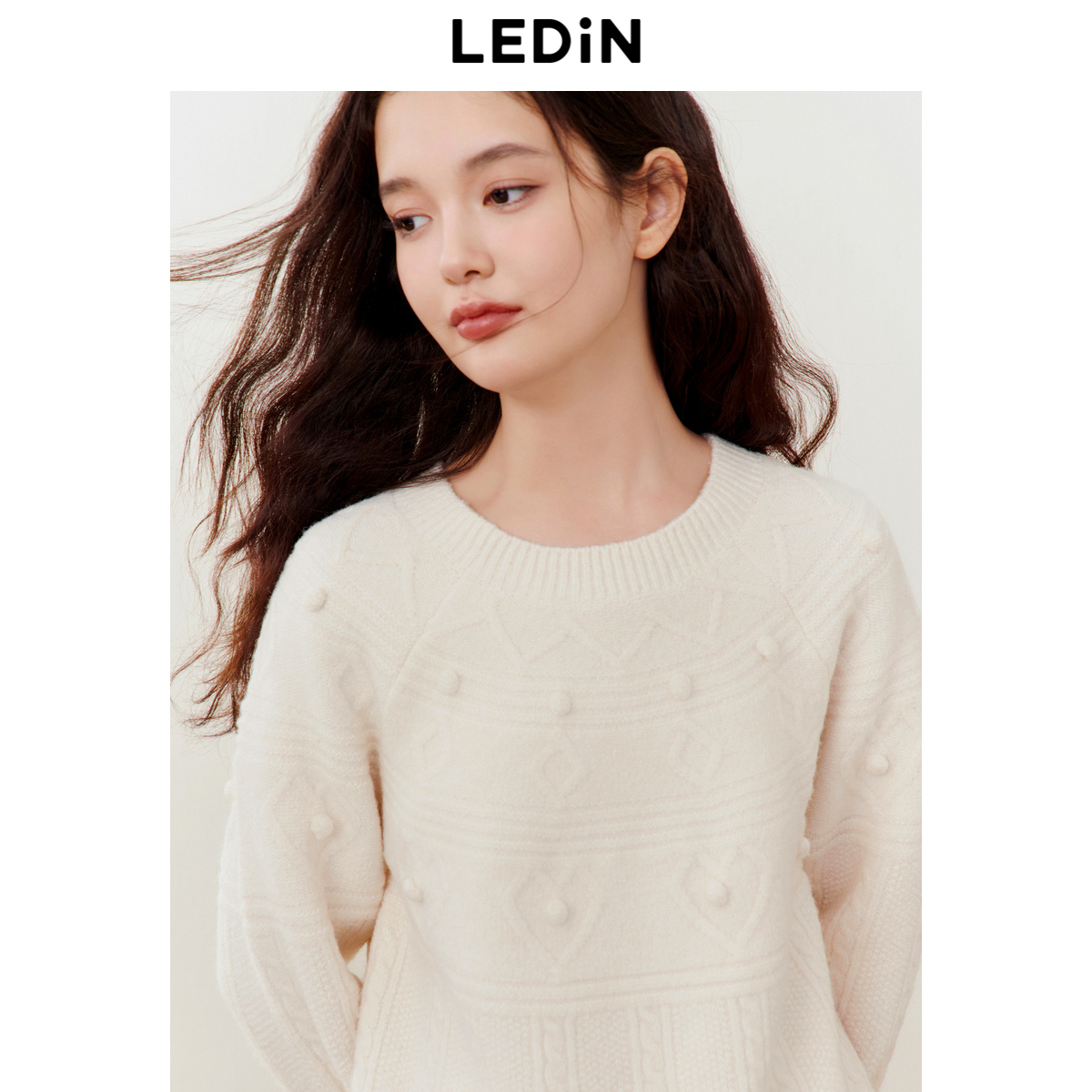 清仓 针织宽松毛衫 乐町重工绞花线套衫 新款 圆领毛衣 女冬季