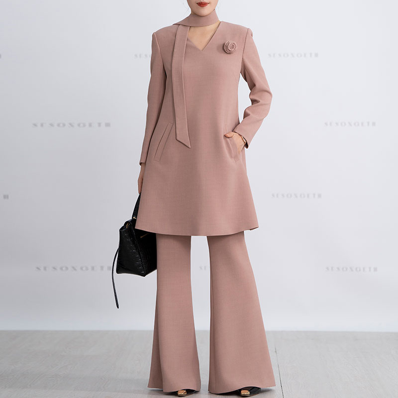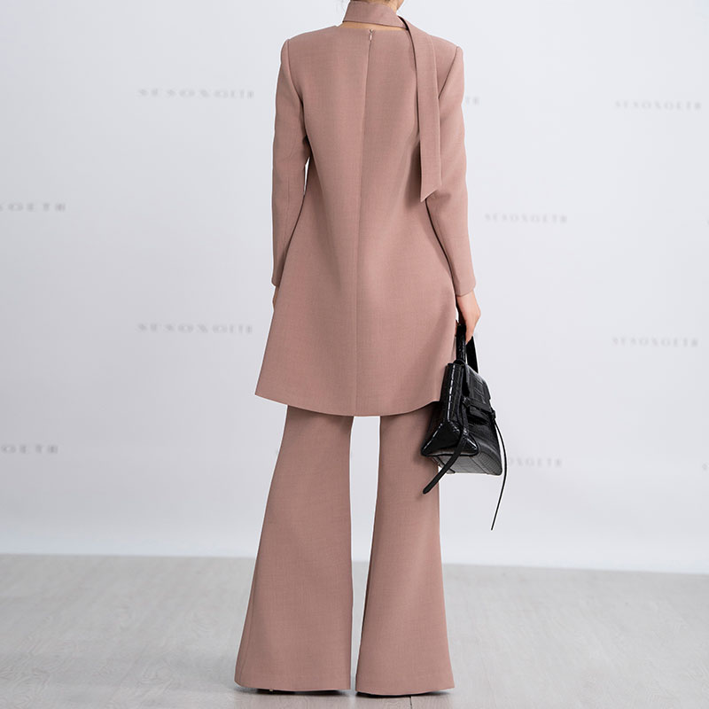 简约气质职场通勤v领中长款 春秋季 2025新款 套装 上衣两件套 喇叭裤