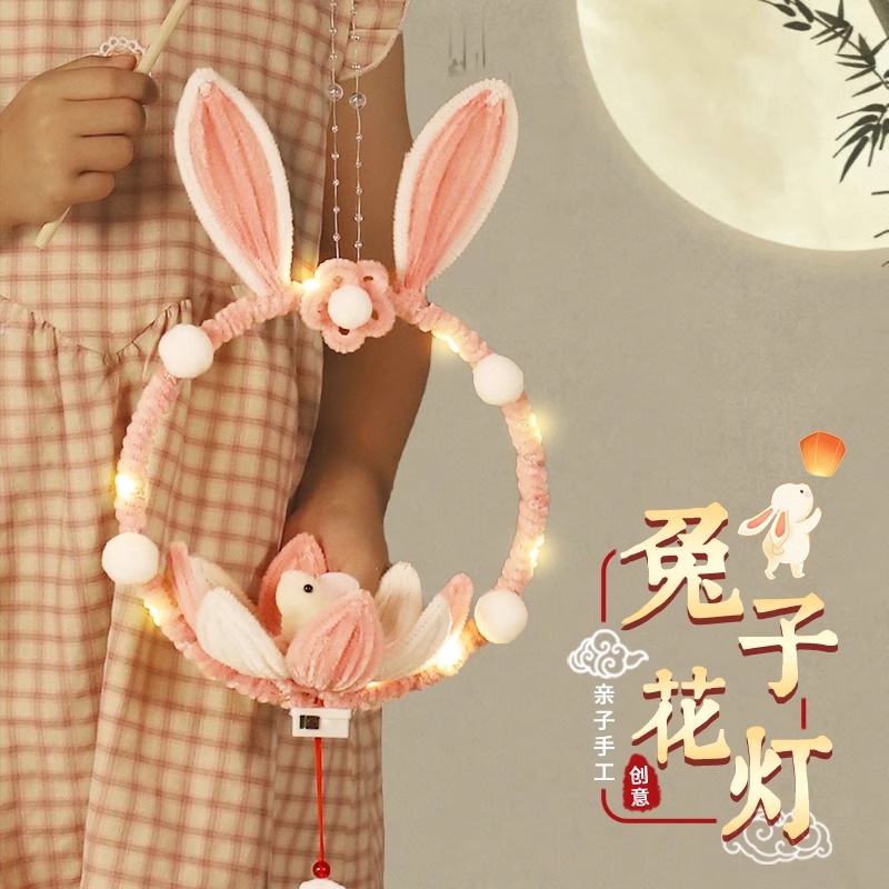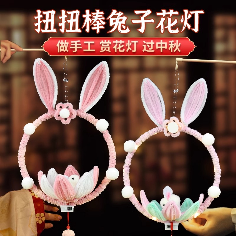 中秋节扭扭棒莲花兔子花灯手工diy材料包儿童幼儿园手提荷花灯笼