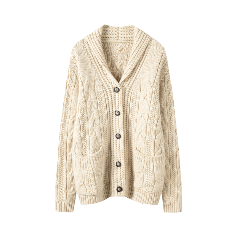 摩安珂 绵羊毛山羊绒高智感扭绳绞花肌理短款 MOCO针织衫 开衫