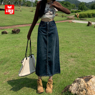 黑灰色鱼尾裙女秋冬百搭慵懒松弛a字包臀裙显瘦针织半身裙长款 裙