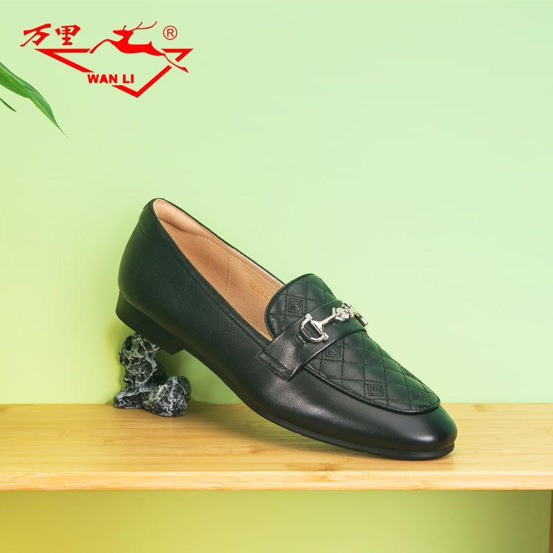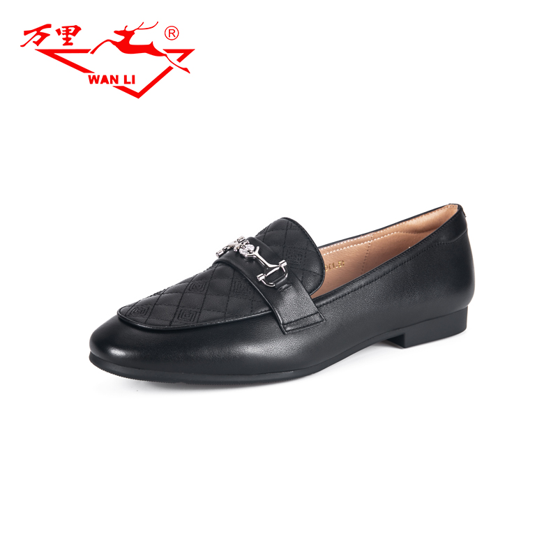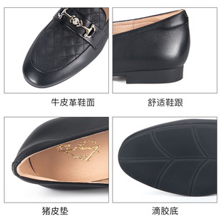 马衔扣通勤鞋 万里新款 时尚 百搭圆头低跟单鞋 HMT2146 真皮套脚女鞋