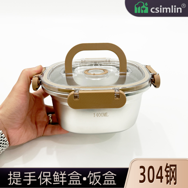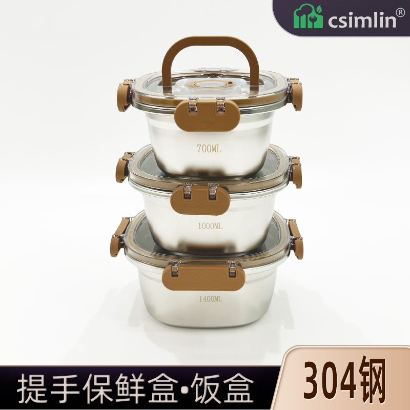 厨森林304不锈钢饭盒保鲜盒密封露营水果盒子便当盒家用冰箱收纳