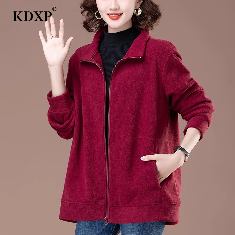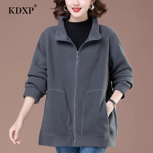 宽松显瘦抓绒中老年人卫衣摇粒绒上衣 新款 时尚 妈妈外套女2025秋季