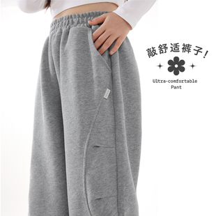 高腰宽松垂感休闲糯米显瘦阔腿裤 子女秋冬2025新款 直筒运动裤 窄版