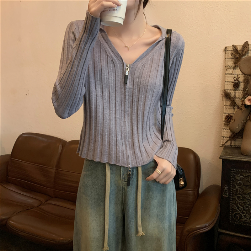 毛衣女 上衣秋冬内搭小众设计感小个子短款 早秋v领长袖 打底针织衫