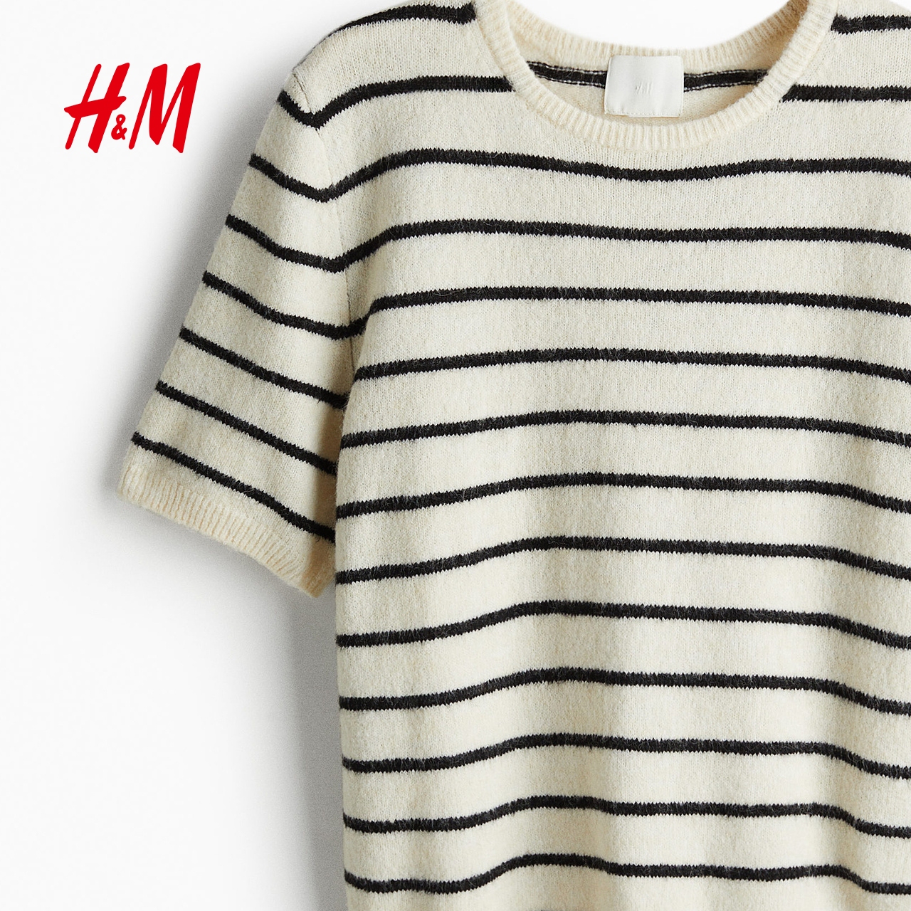 针织衫 条纹短袖 长袖 开衫 毛衣外套 RARN2025秋装 两件套圆领修身 新款